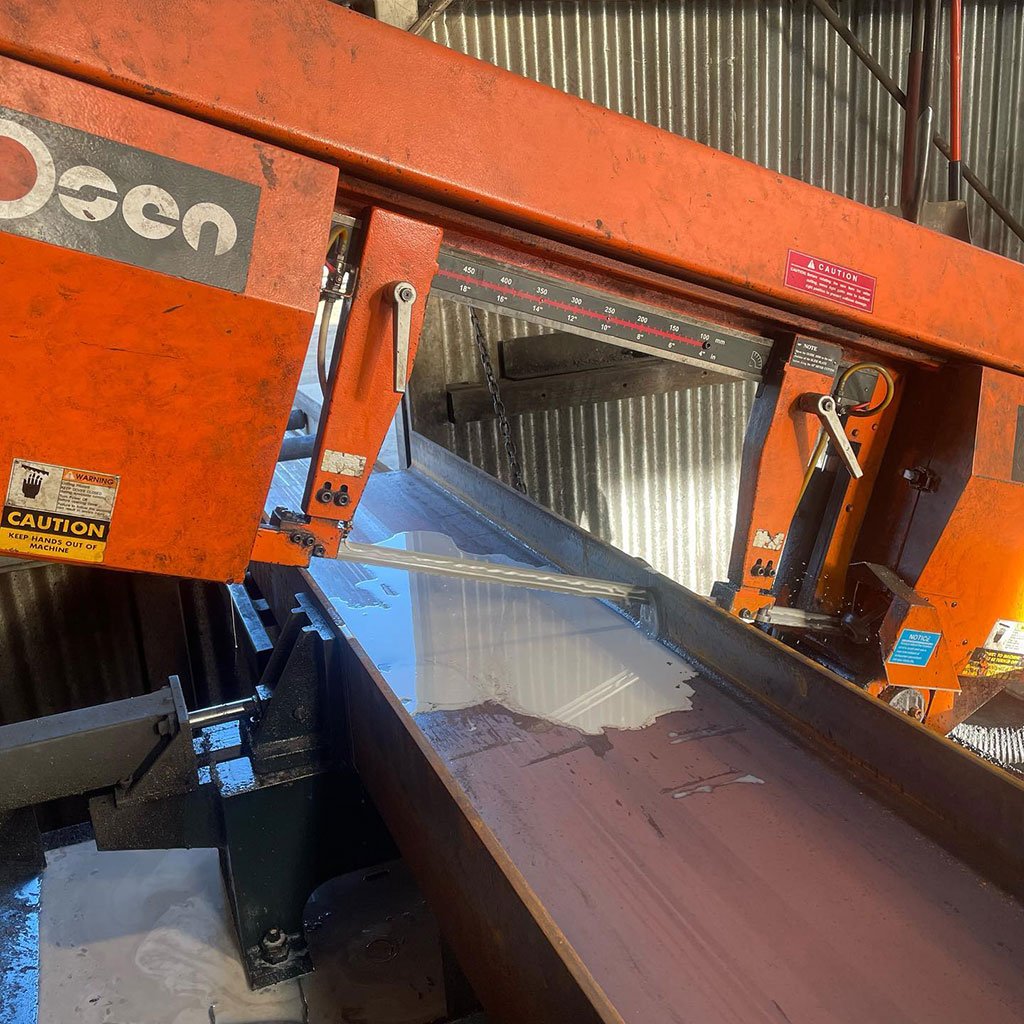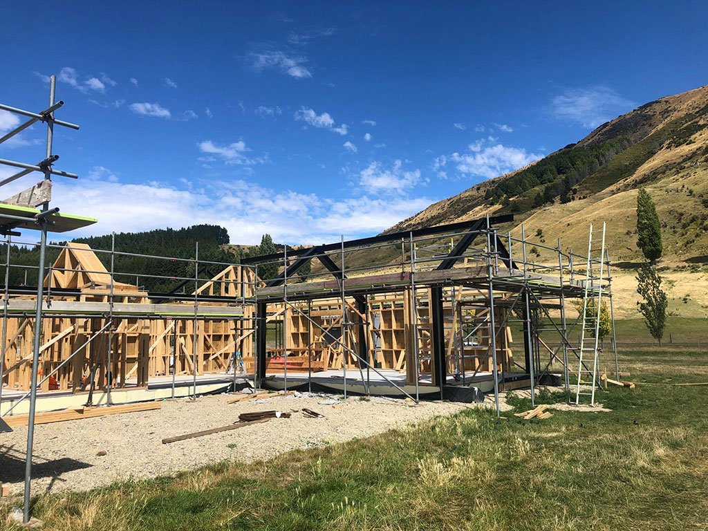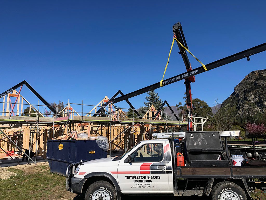 Bandsaw cut, 460 UB, big house build, Central Otago new home, beam