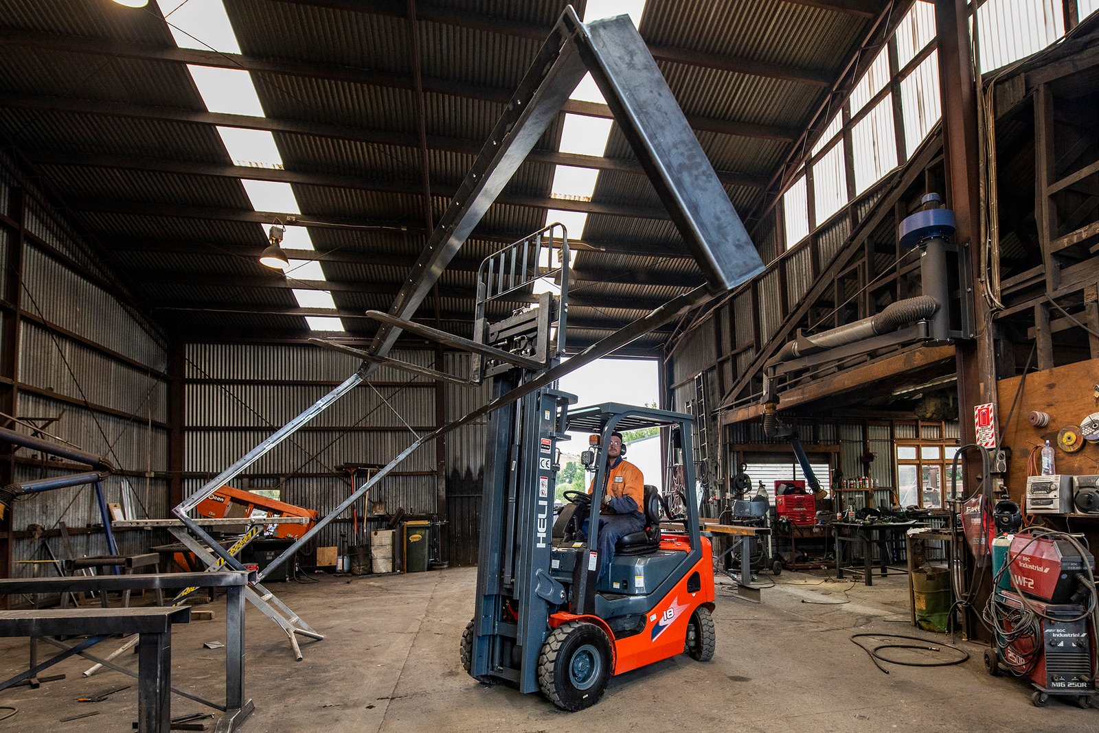 Structural steel install, ridge beams, Christie brothers building, hiab, Lakeland contracting, 250 pfc portal