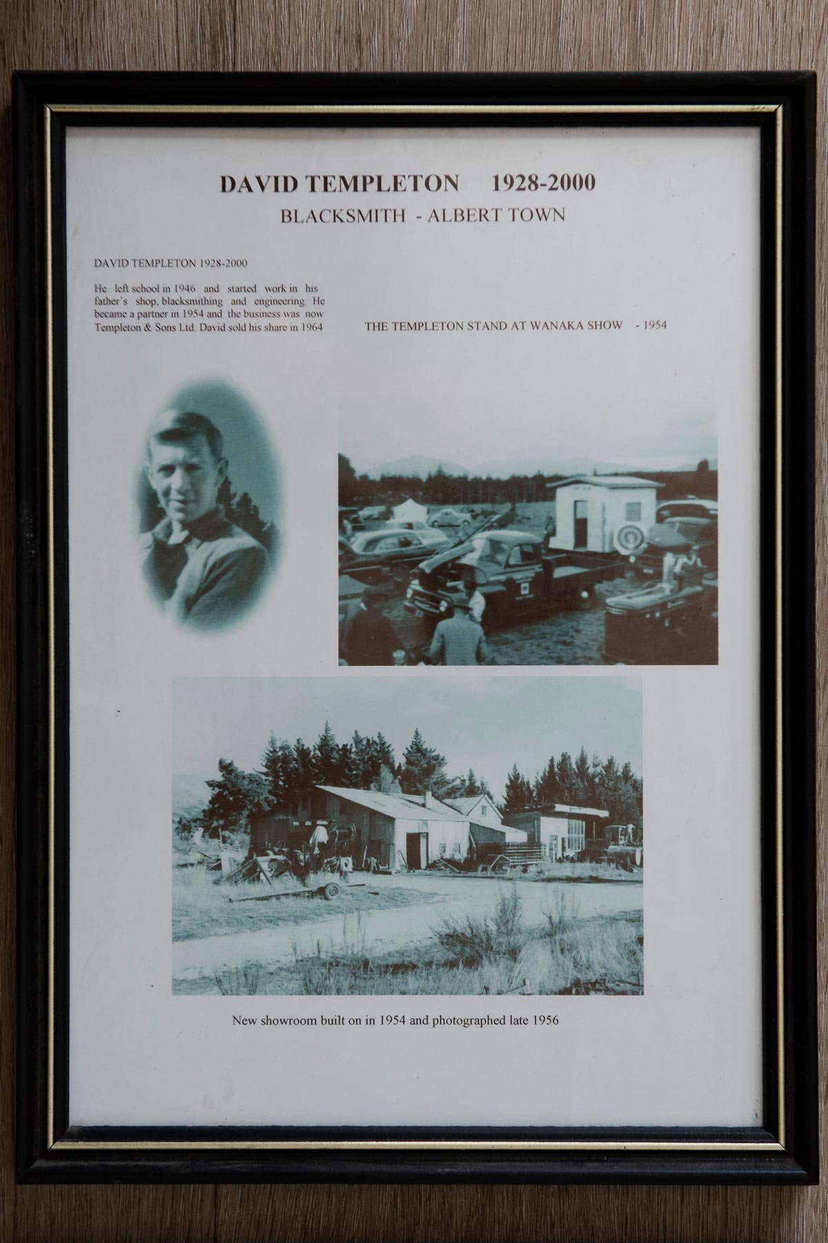 Charles Templeton (James’ son) took over the family’s blacksmith wheel righting business (started in 1906) in 1913 and gained a reputation of being able to fix almost any broken equipment. It is most likely that farmers came from all over the district to have work done that Albert Town survived to this day. Templeton Engineering is the oldest continually operating business in the Upper Clutha and is the Bank of New Zealand’s oldest customer in NZ.